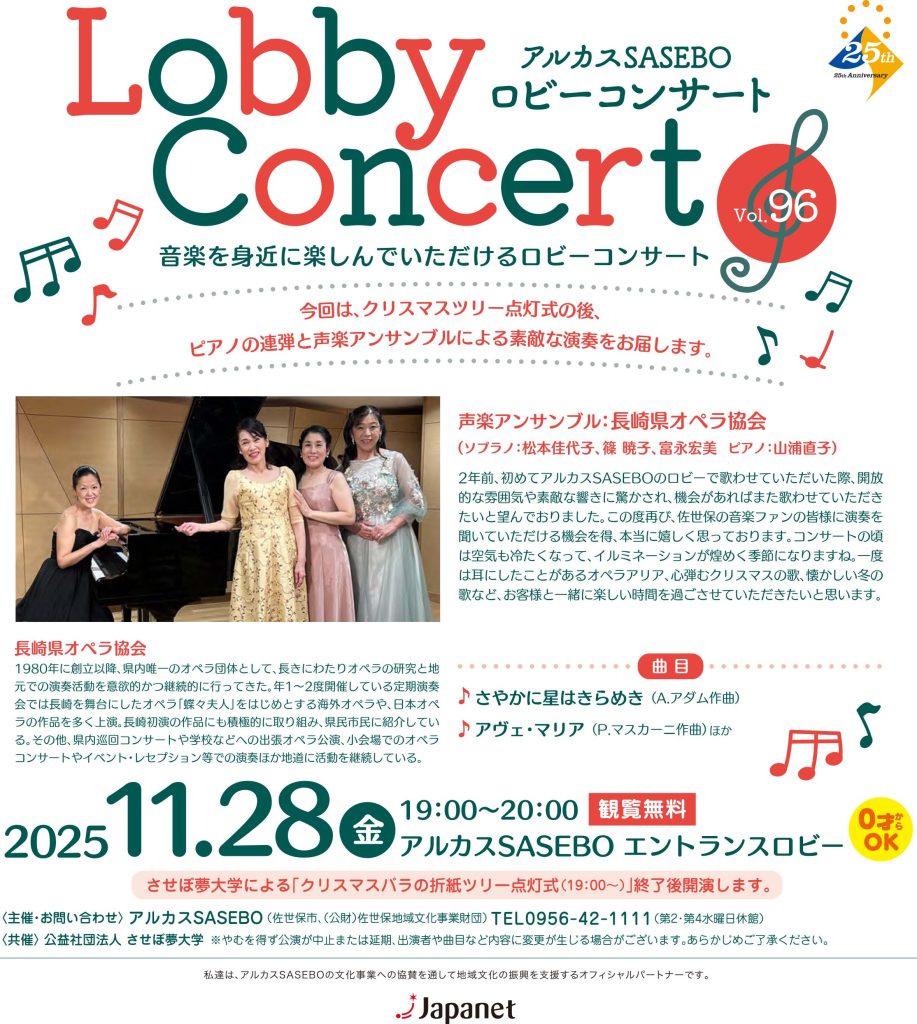 ※させぼ夢大学による「クリスマスバラの折紙ツリー点灯式(19:00〜)」終了後開演します